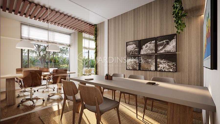 O projeto conta com amplo e completo lazer, valorizando linhas orgânicas e texturas naturais.