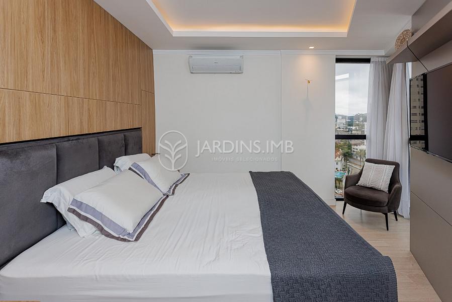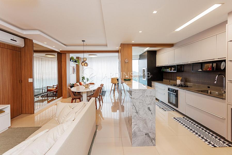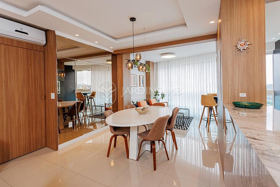 São 3 suítes mas 1 escritório, living amplo e integrado com a churrasqueira, lavabo. Possui uma vista espetacular da cidade e da baía da Babitonga.