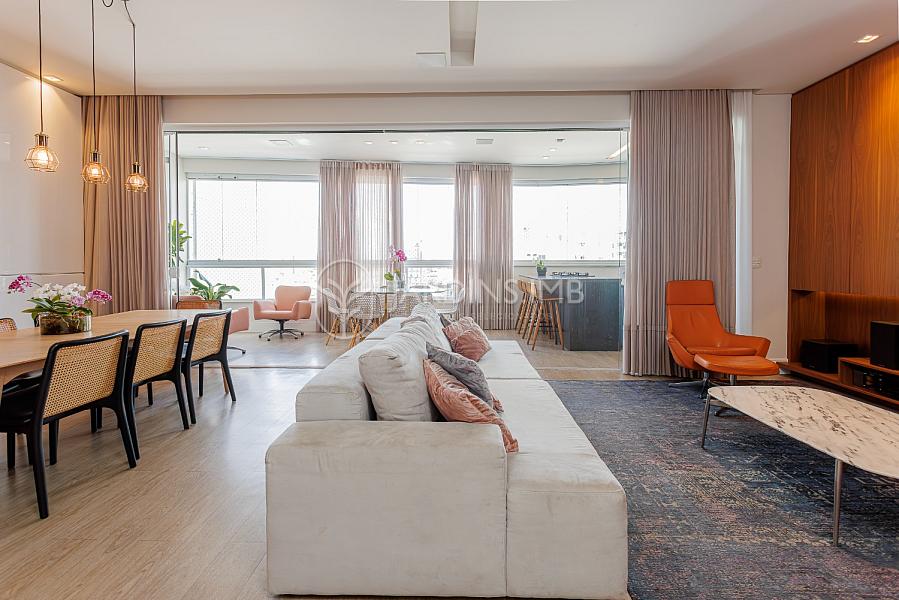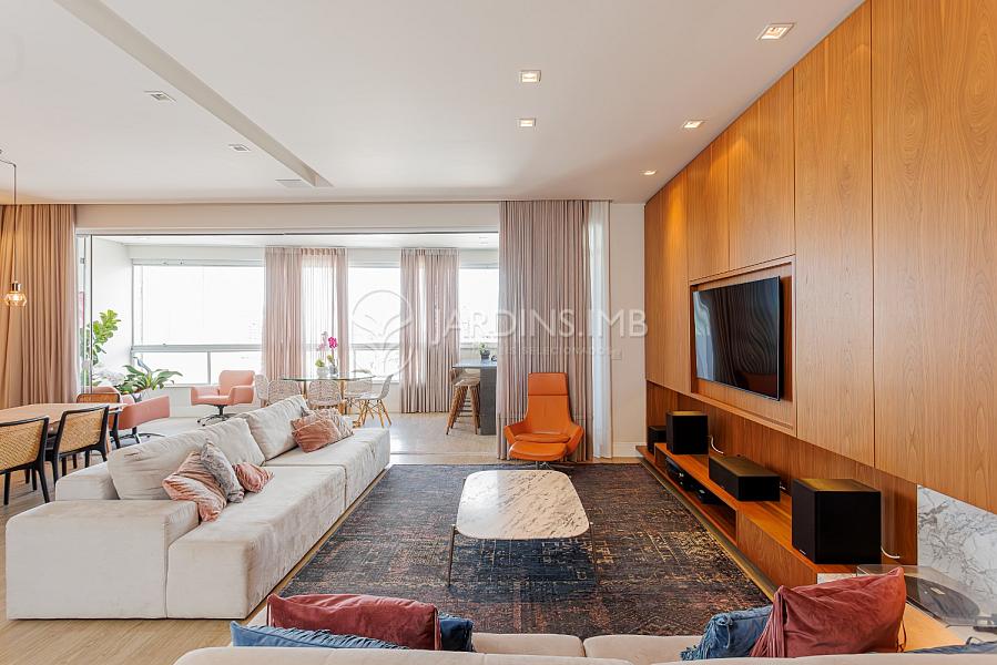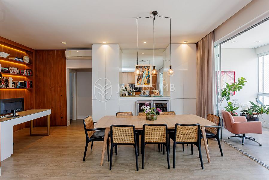 Apartamento belíssimo, com living integrado, lareira, espaço gourmet e um home office funcional.