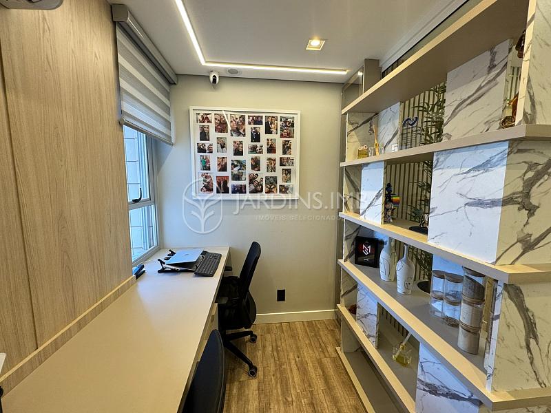 1 suite master com closet, 1 dormitório, escritório, banheiro social e lavabo.