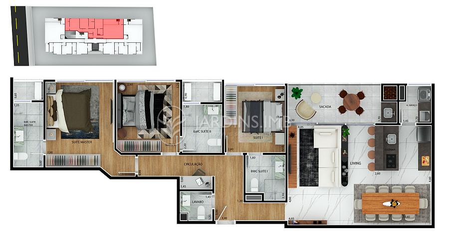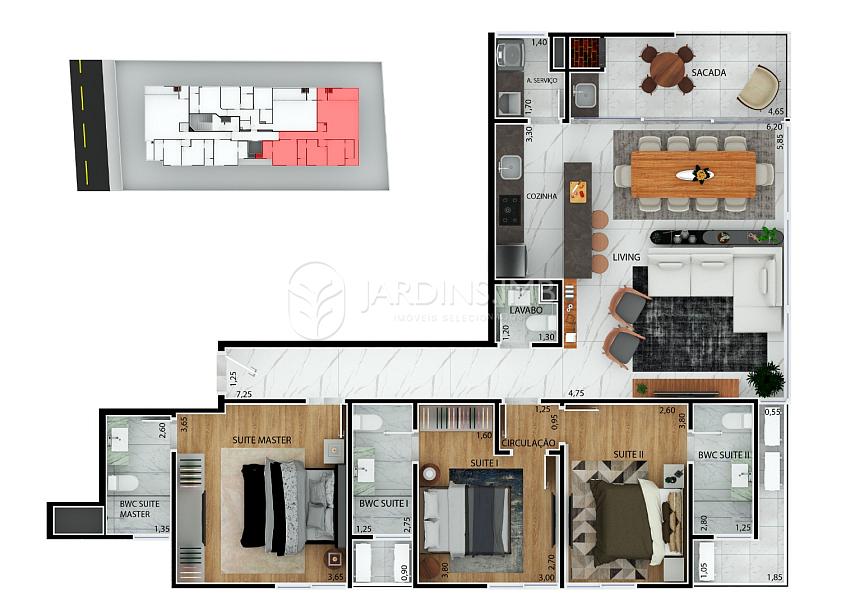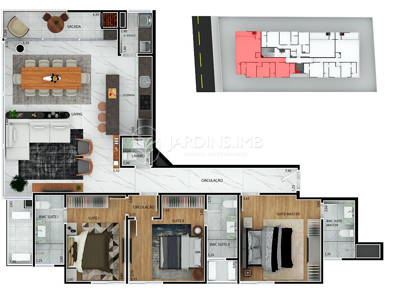 Sofisticação e muita leveza, definem esse projeto exclusivo, que conta com apenas 22 apartamentos com metragens privativas entre 113 a 120 m², todos com 3 suites.