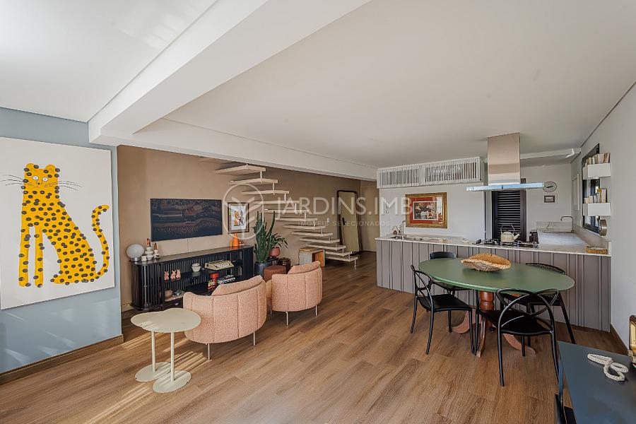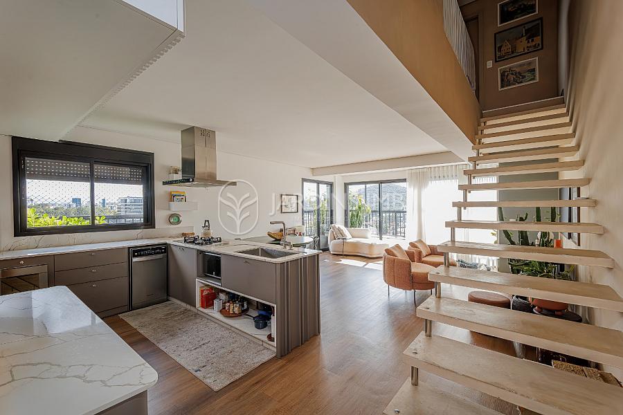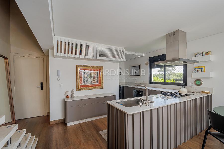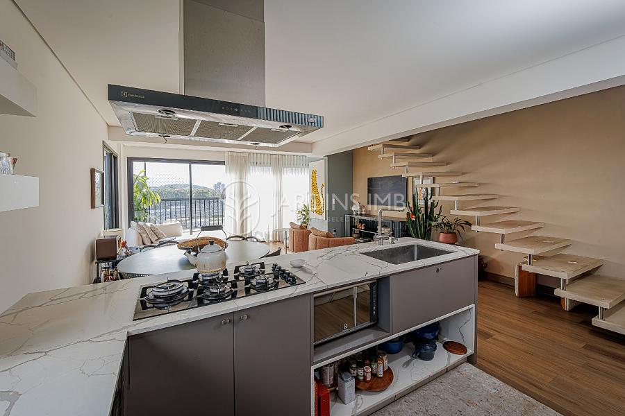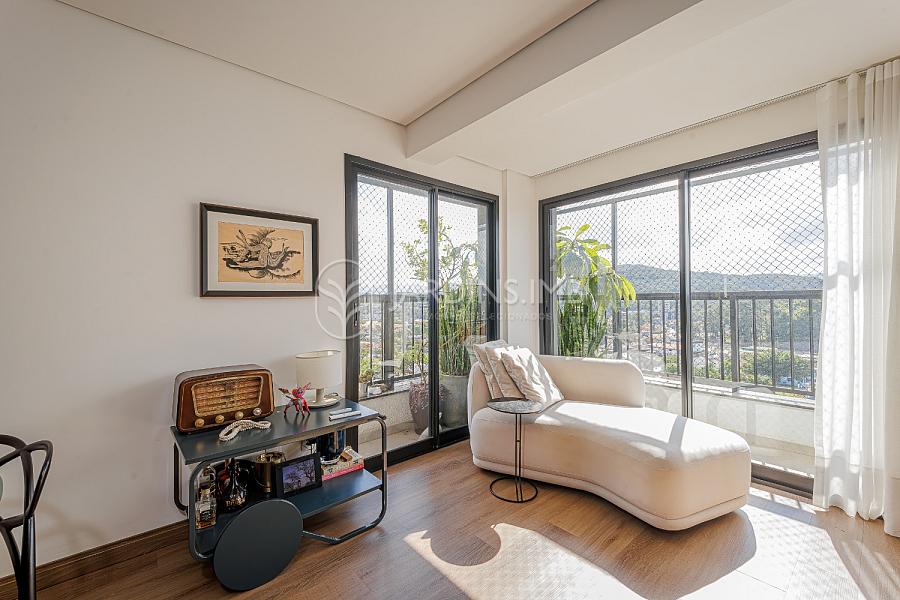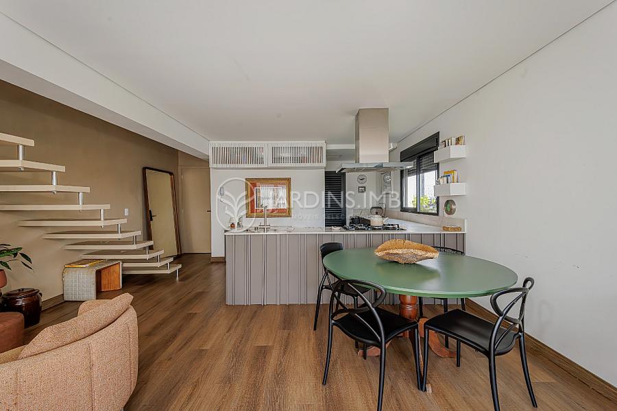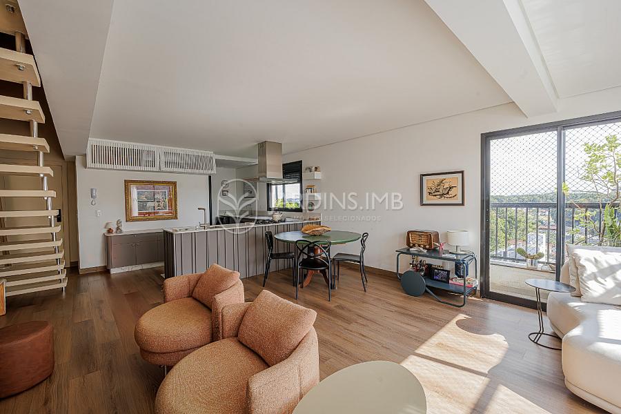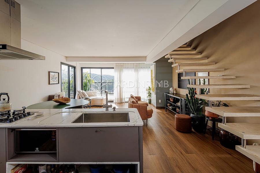 Super modermo e charmoso, esse apartamento com 112m² de área privativa , conta com 1 suíte mais 2 dormitórios e banheiro no andar superior .Sala de estar , jantar e cozinha integradas no andar inferior.  Churrasqueira a carvão e sacada com uma linda vista para a serra do mar.