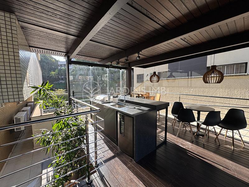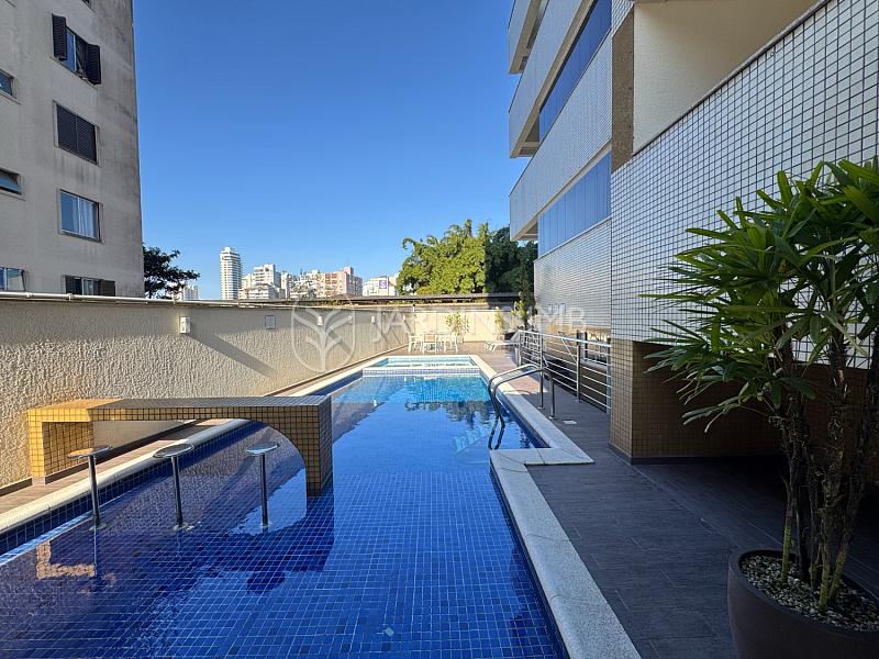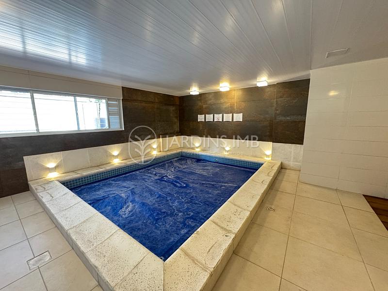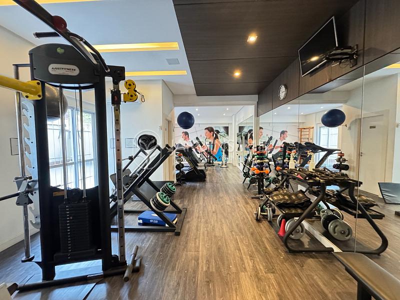 Prédio conta com hall de entrada com pé direito duplo, portaria 24 horas, quadra de esportes, salão de festas, sauna, piscina aquecida, academia, espaço bar molhado, cinema, mini mercado.