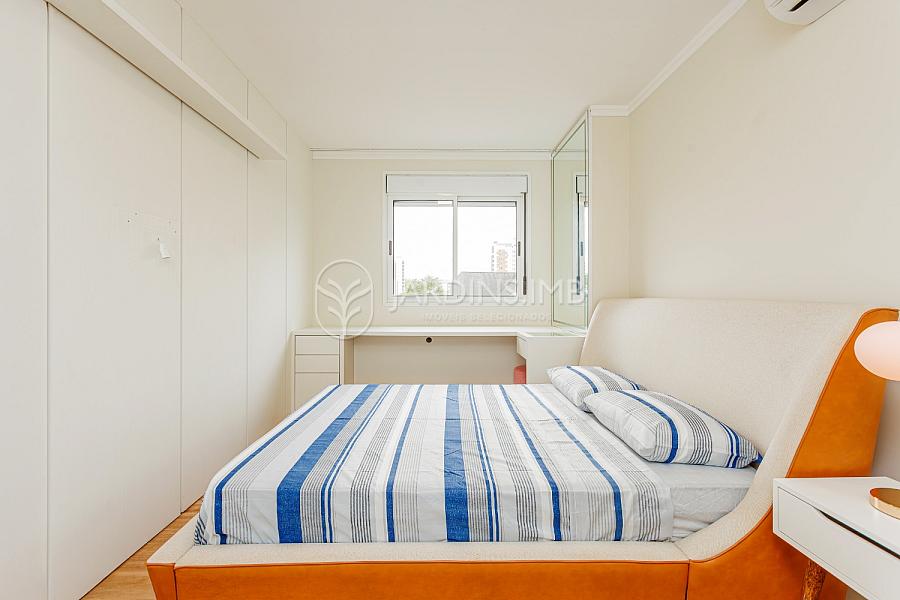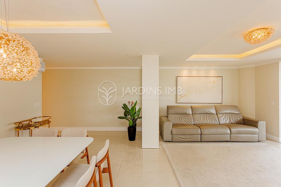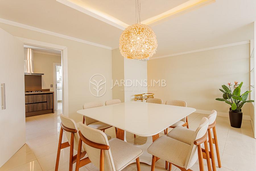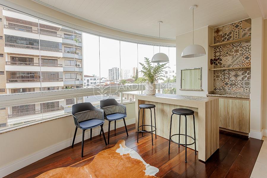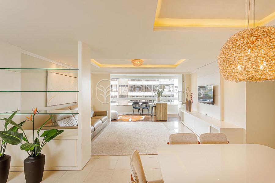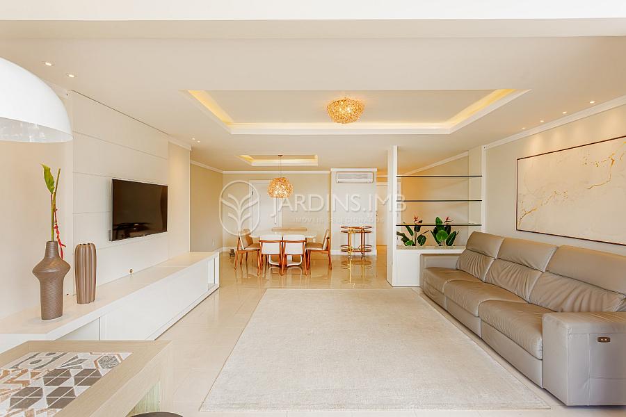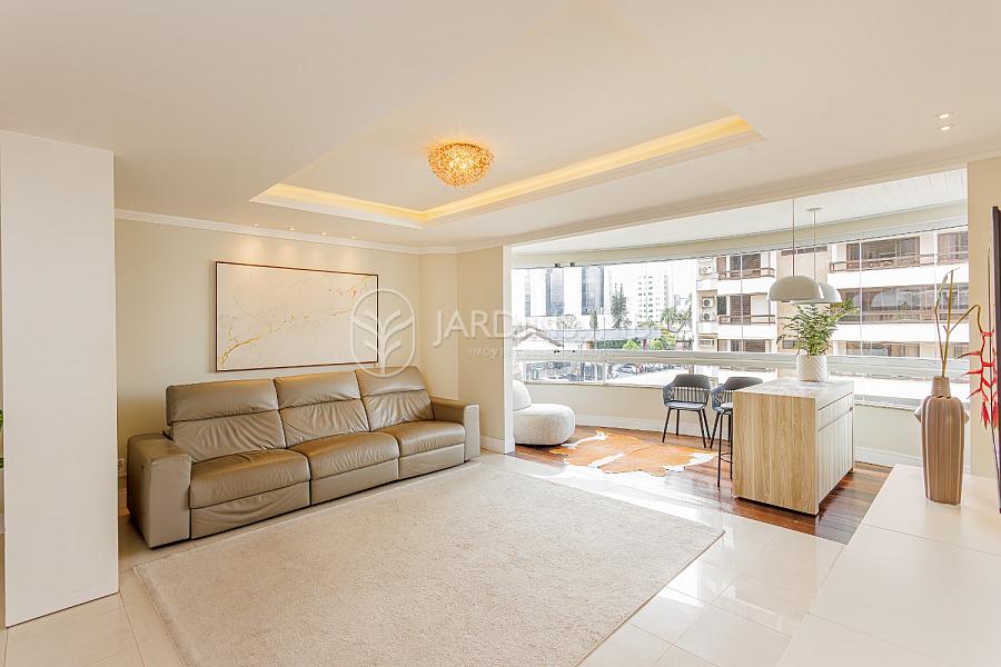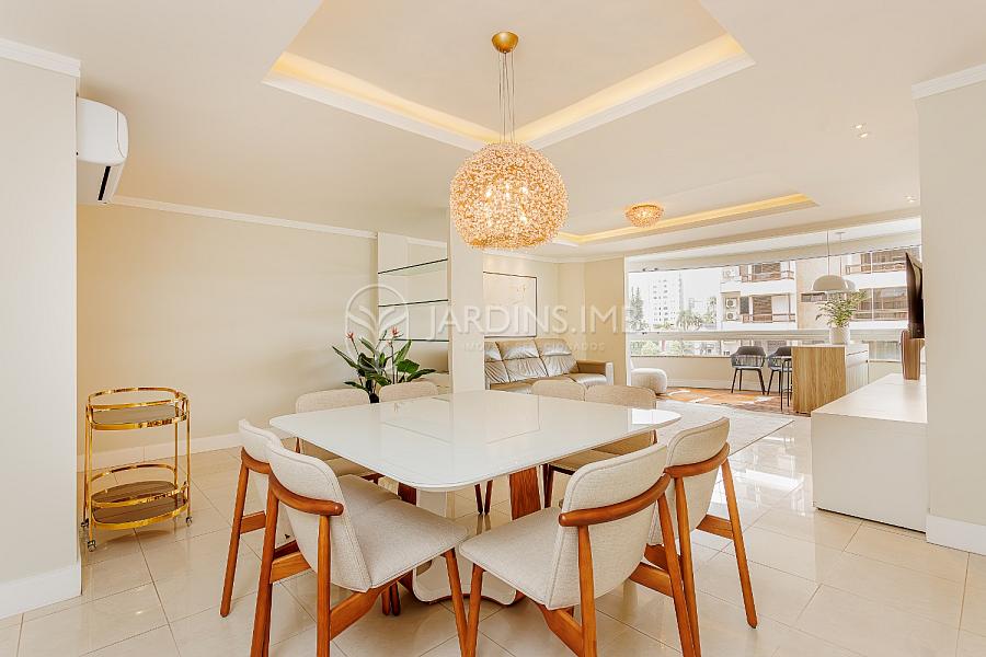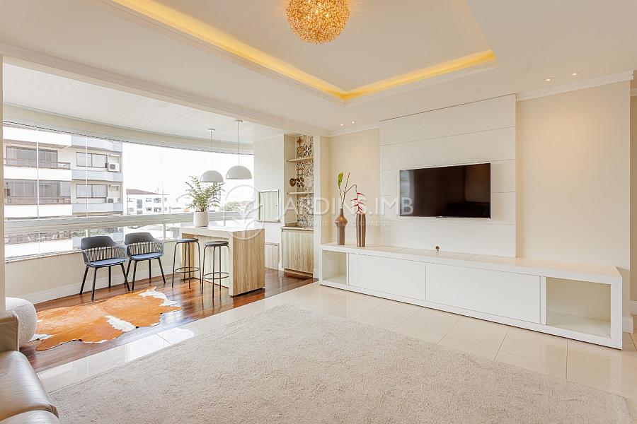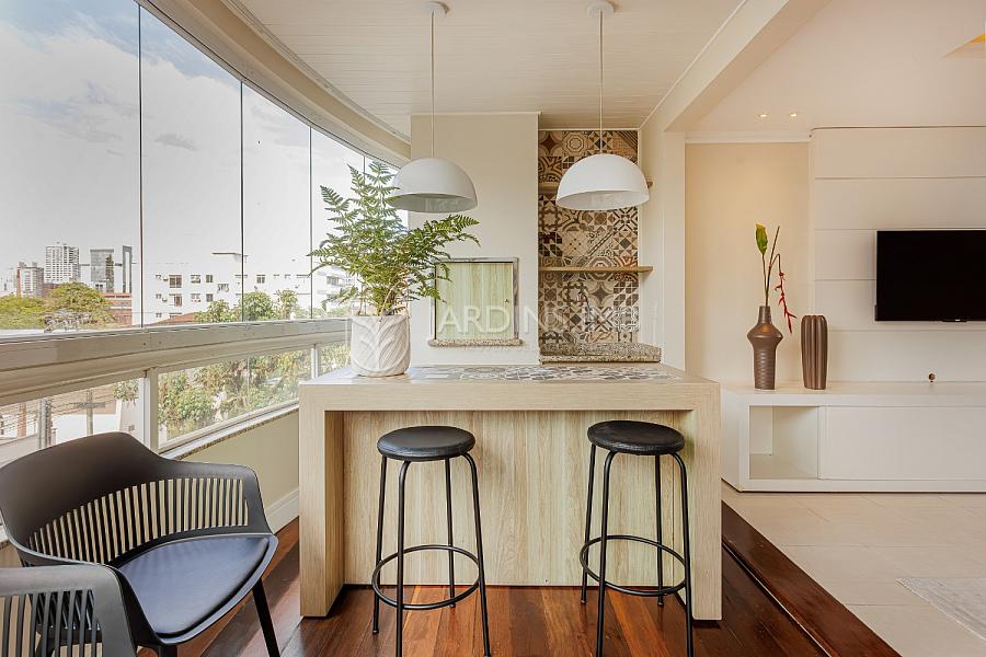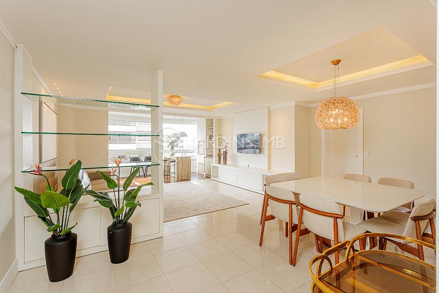 São 3 suítes, sendo 2 mobiliadas, living amplo integrado à sacada com churrasqueira, cozinha fechada, área de serviço e despensa com banheiro de serviço e ainda um lavabo.