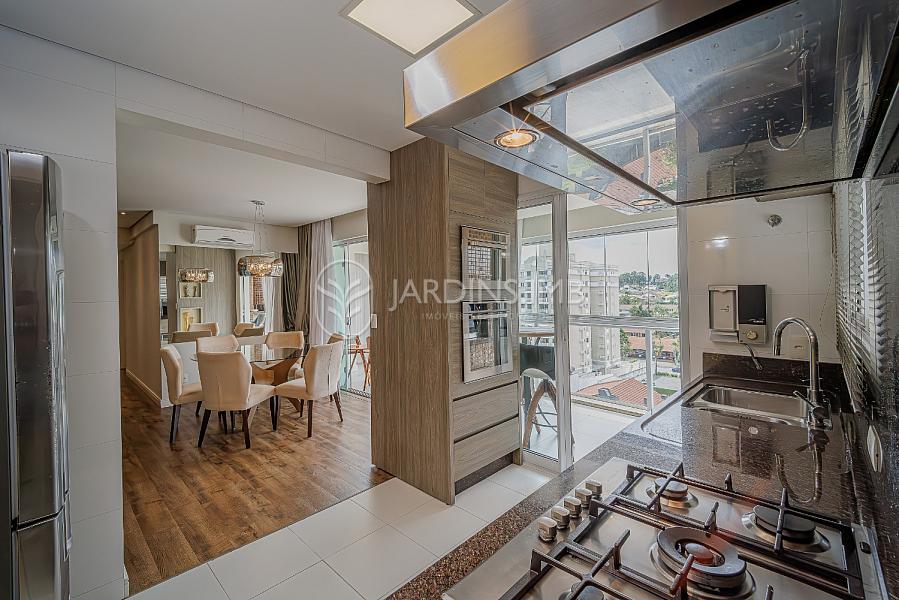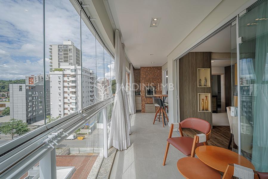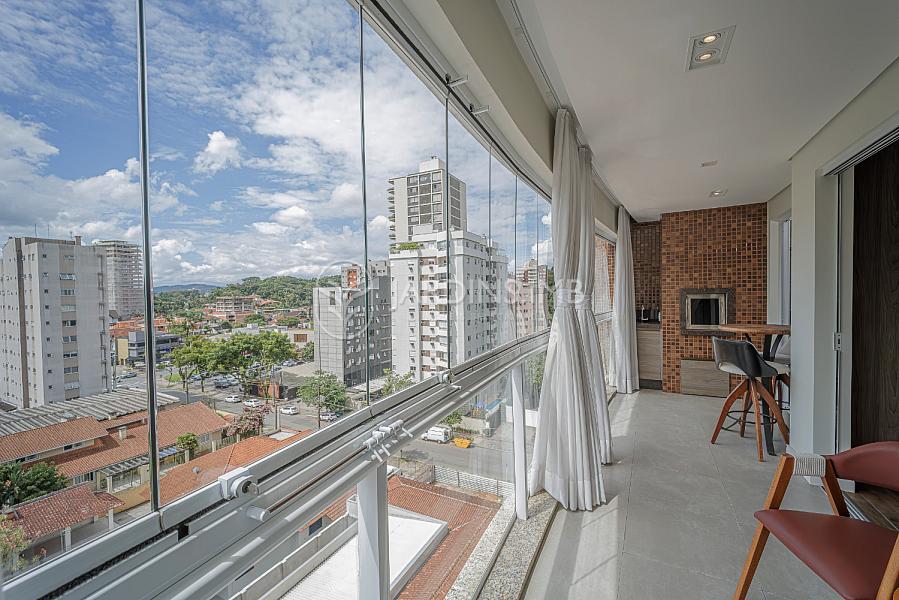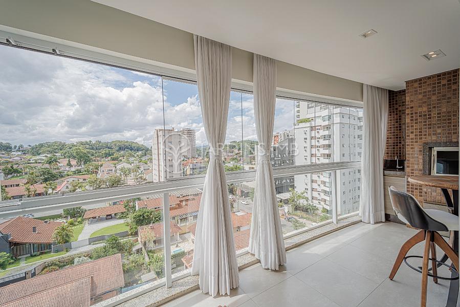 A sacada do apartamento está fechada com sistema Reicki e possui churrasqueira a carvão, criando um ambiente para contemplar a linda vista da cidade.