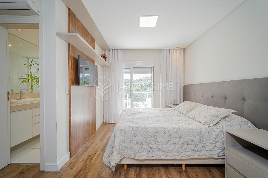 A suíte principal, possui uma ótima sacada, na qual também é possivel apreciar o por do sol.