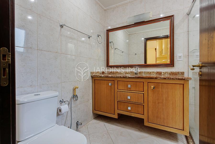 Ele possui 163 m² privativos, tendo 2 suites mais 1 quarto, banheiro social e um lavabo.