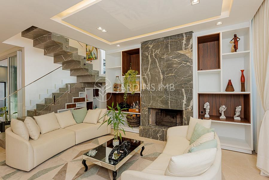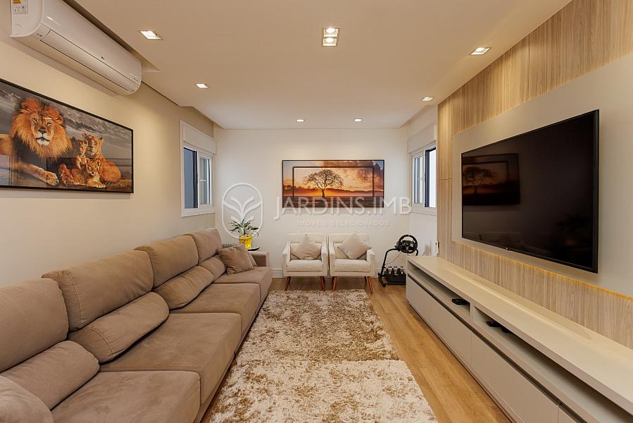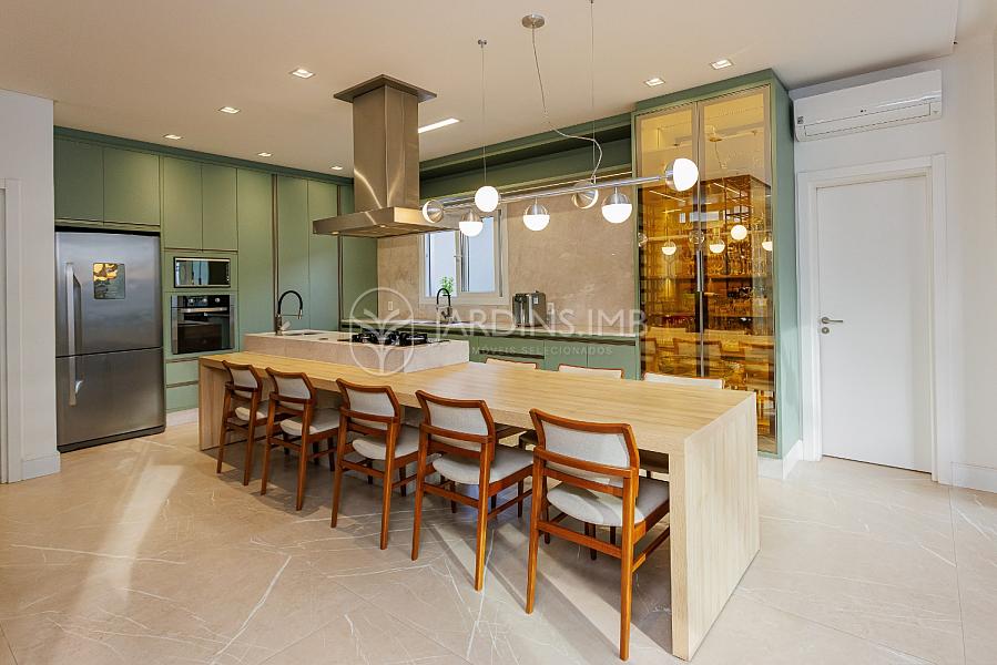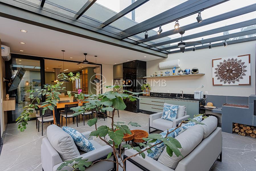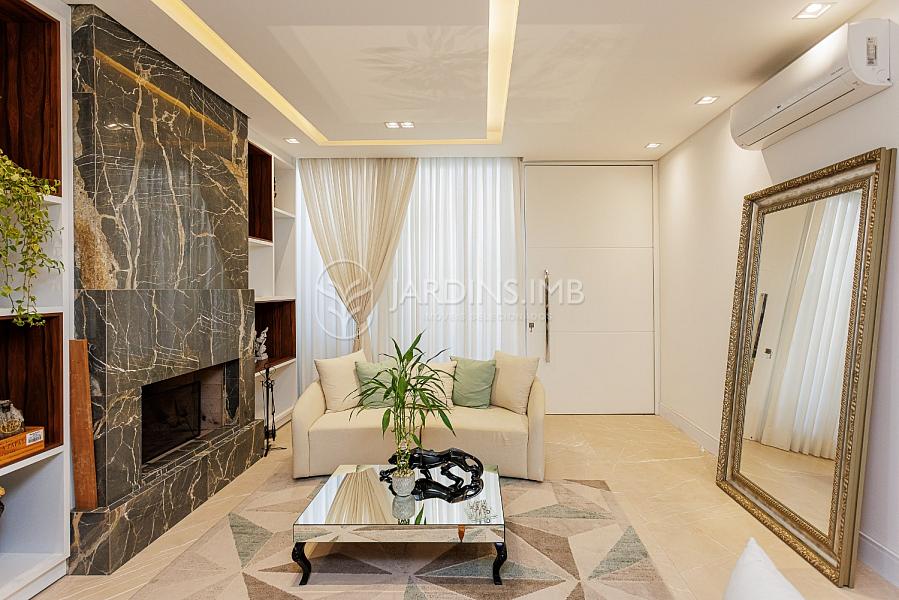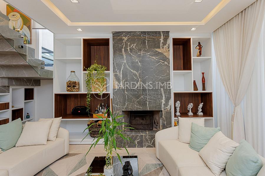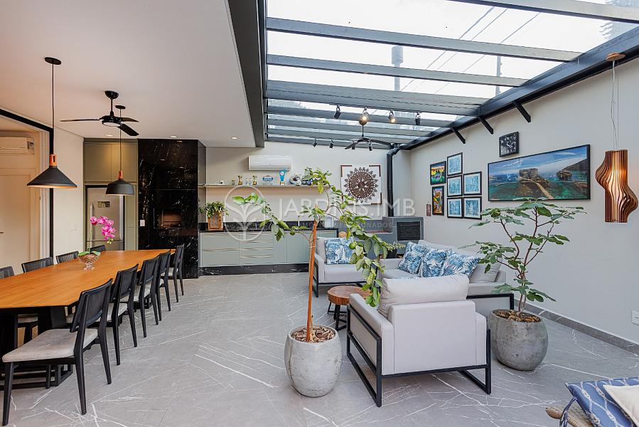 São 300m² de muito conforto e requinte. Sala de estar com lareira, cozinha integrada com área gourmet e uma linda adega. A área gourmet possui churrasqueira a carvão, fogão a lenha e teto retrátil, além de uma piscina para os dias quentes de verão.