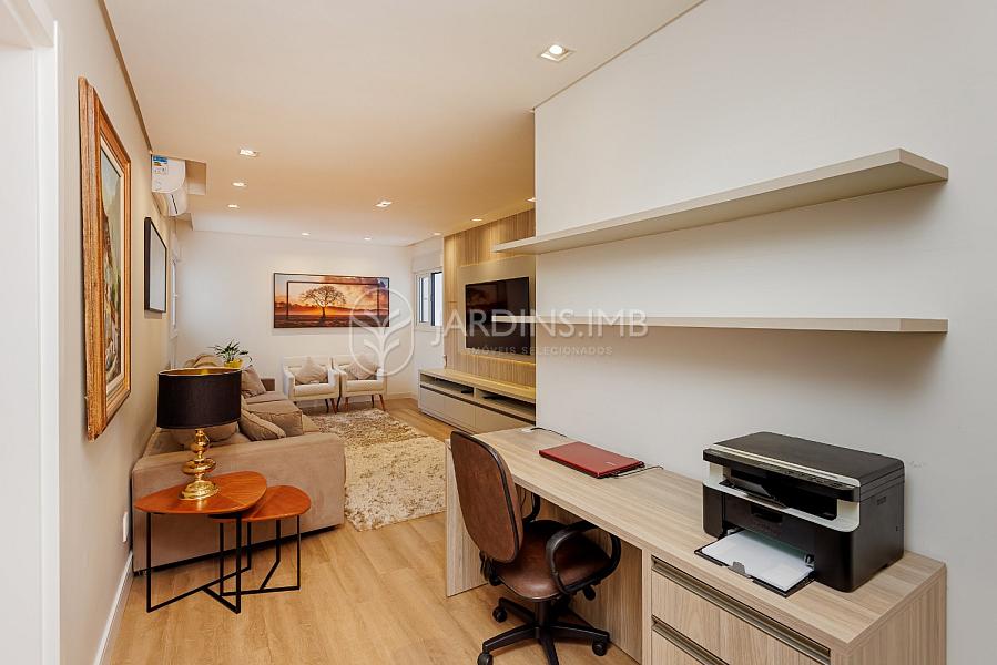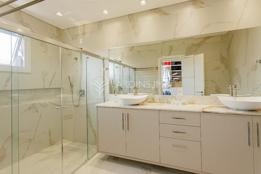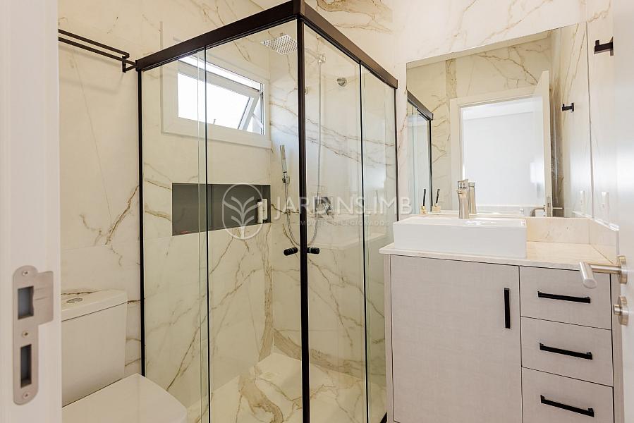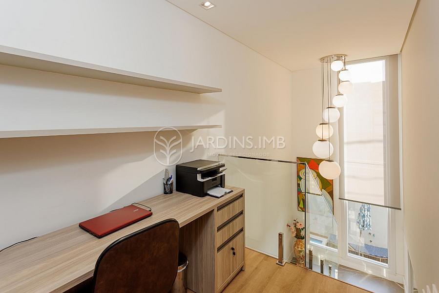 No piso superior , conta com 1 suíte master mais 2 suítes , sala de estar e home office.