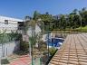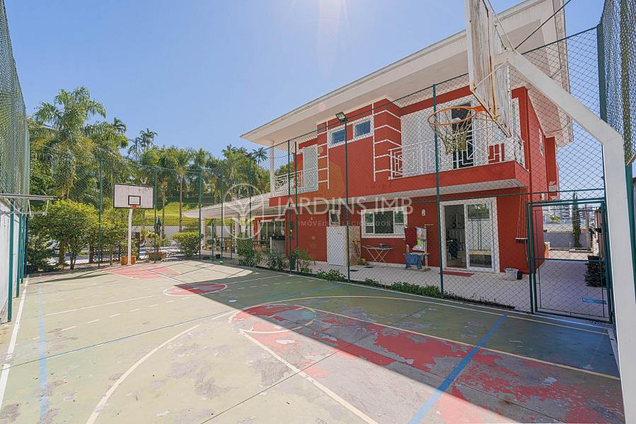 Um jardim maravilhoso, quadra de eportes e piscina para os dias quentes de verão.