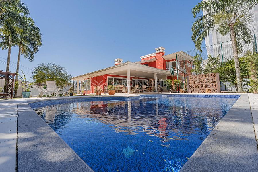 Casa de esquina no Residencial Orleans, com  530m² de área construída. São 3 suítes no andar superior e um mezanino com uma sala íntima.