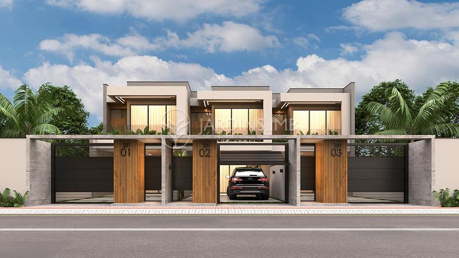 Um sobrado diferenciado à venda no Saguaçu: acabamento de alto padrão, piscina e excelente terreno de fundos.