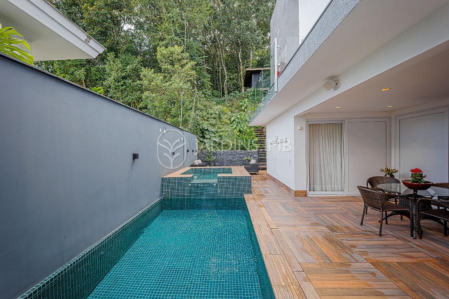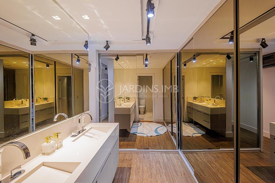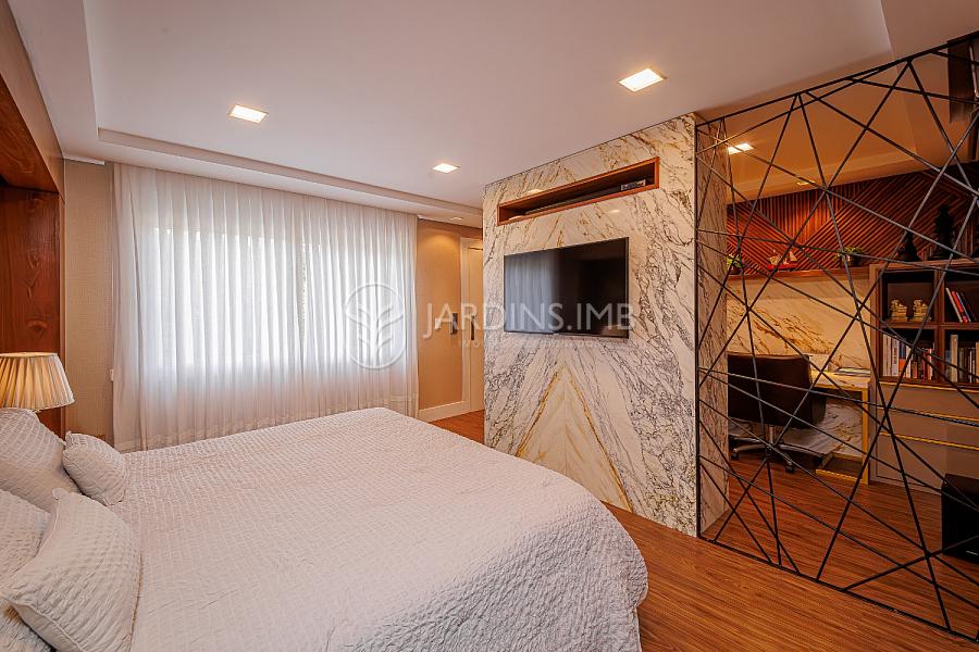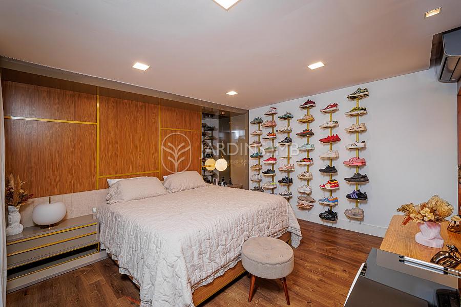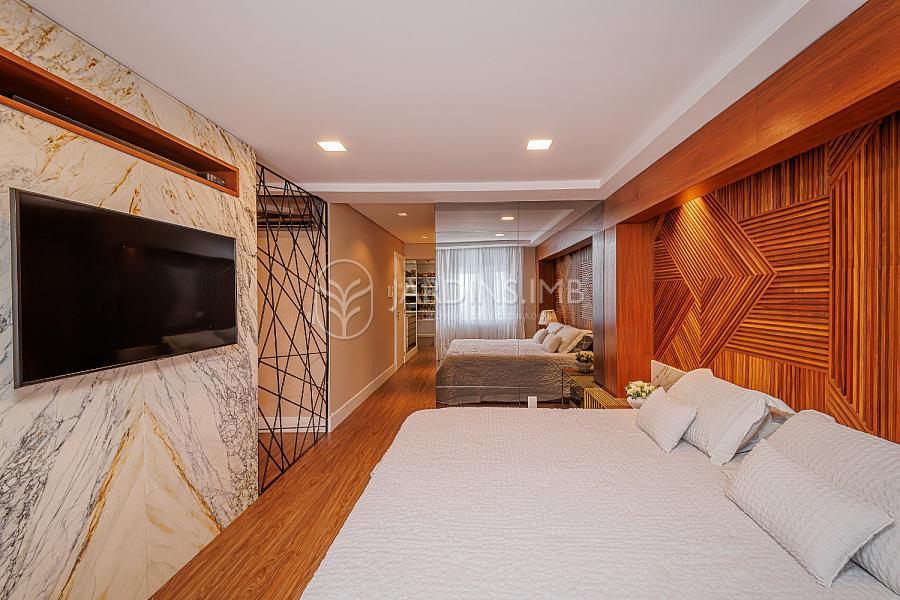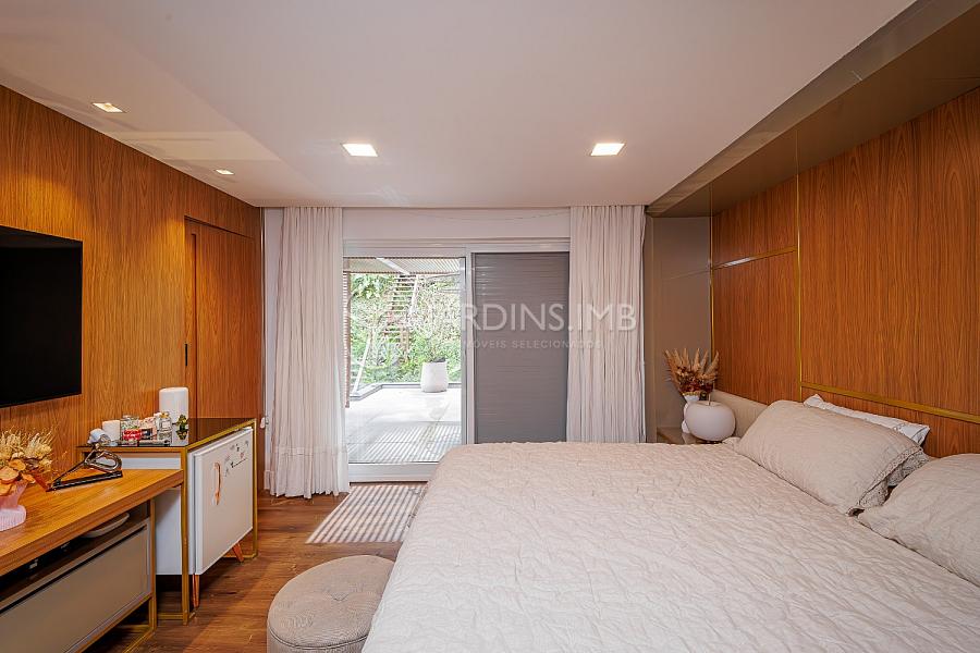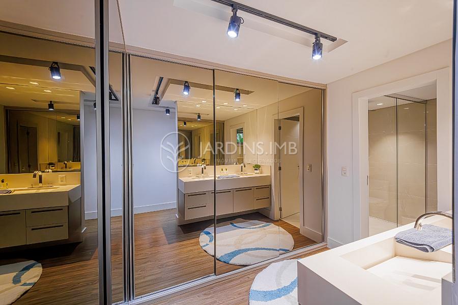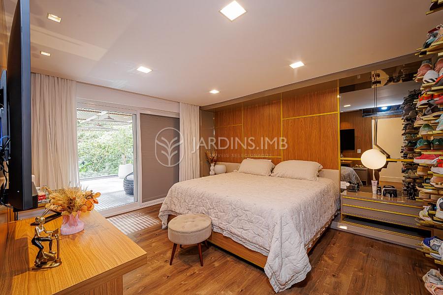 Possui um totla de 4 suítes , sendo 1 suíte master com spa e sauna seca e outra suíte com dois closets e varanda para o verde.