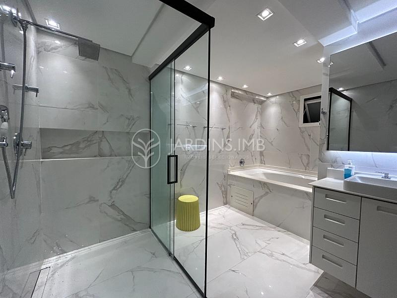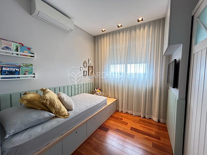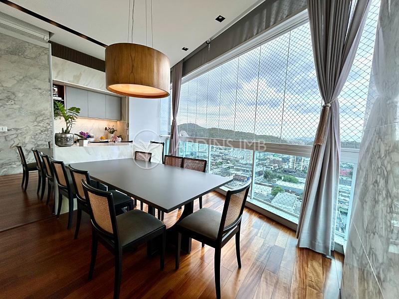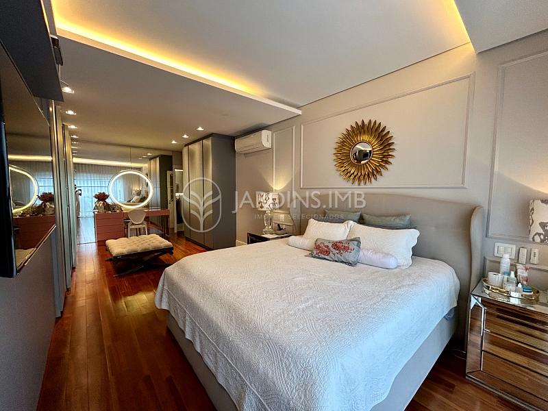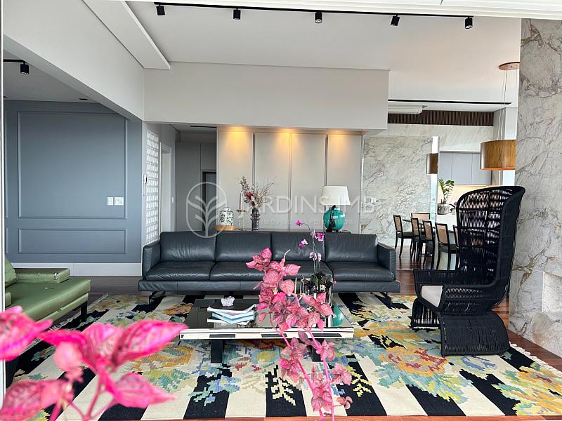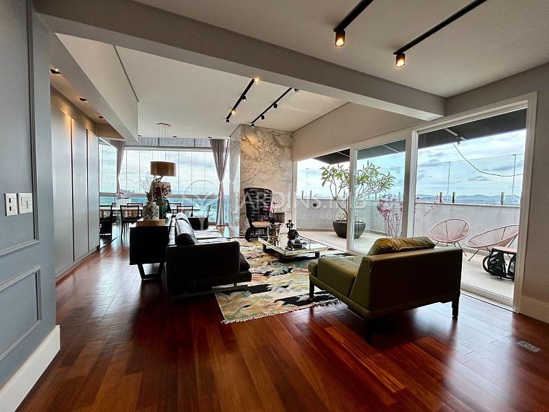 São 271m² de área privativa, 1 suíte master mais 3 suítes, living integrado com lareira, uma amplo espaço de varanda e área gourmet com churrasqueira.