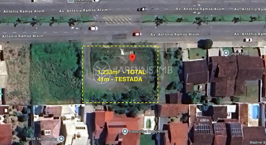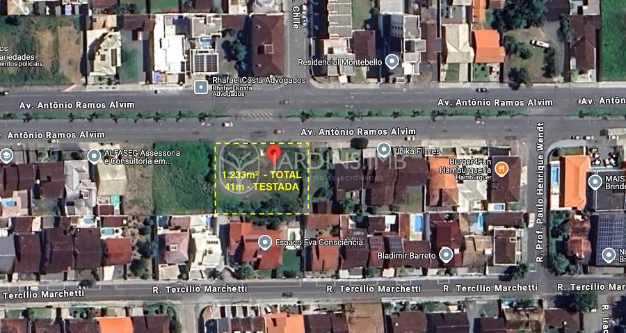 O terreno possui 1.233 m² de área total, 41 metros de frente e 30 metros em ambas as laterais. Próximo você encontra lojas, escolas, colégios e uma vasta gama de comércios.
